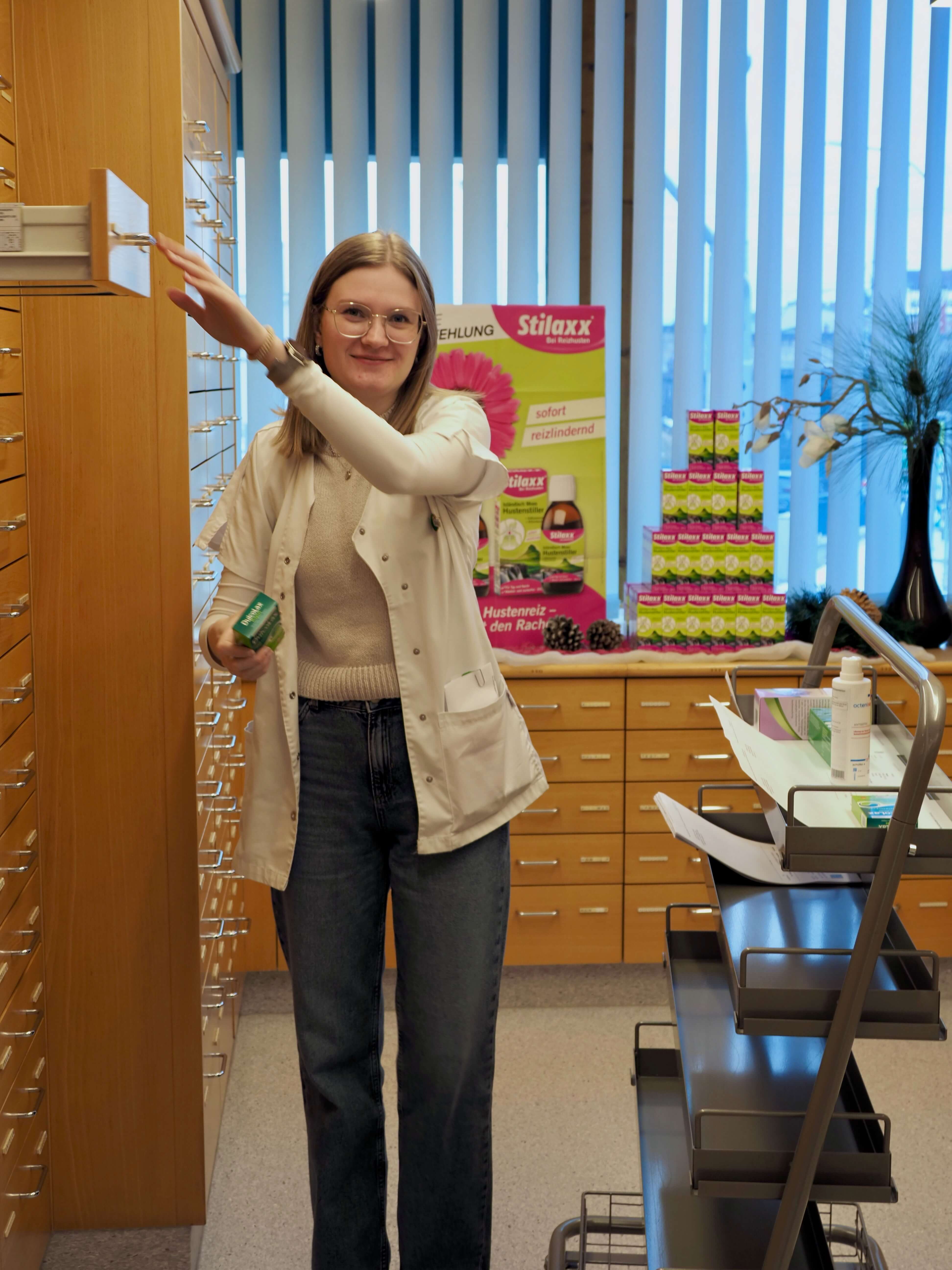 Mit meinem scharfen Blick kontrolliere ich die Blister und sorge für die sichere Zustellung an die Heimpatienten. Meine ruhige Art ermöglicht es mir jederzeit den Überblick zu bewahren.